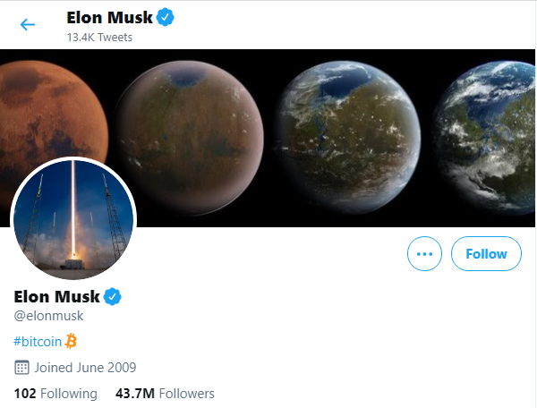 - Elon Musk adicionou uma hashtag Bitcoin à sua biografia no Twitter.