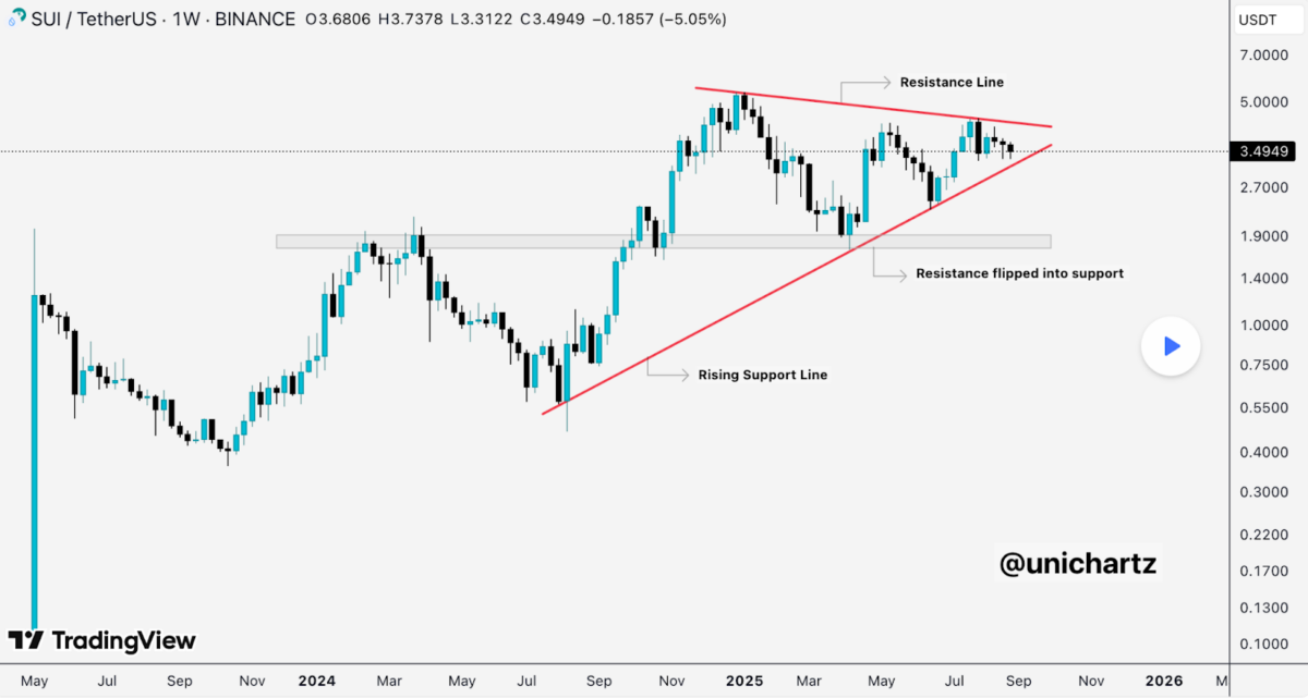 Analistas afirmam que essas parcerias podem impulsionar uma maior adoção institucional e colocar a SUI na disputa como um dos melhores projetos de criptomoedas de 2025. A estrutura otimista que se forma em torno de seus fundamentos faz da SUI um token para ficar de olho, juntamente com Solana.