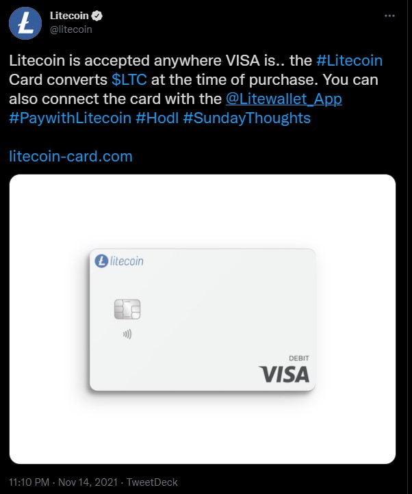 - Litecoin anunciou no Twitter que LTC é aceito em qualquer lugar onde o VISA seja aceito.