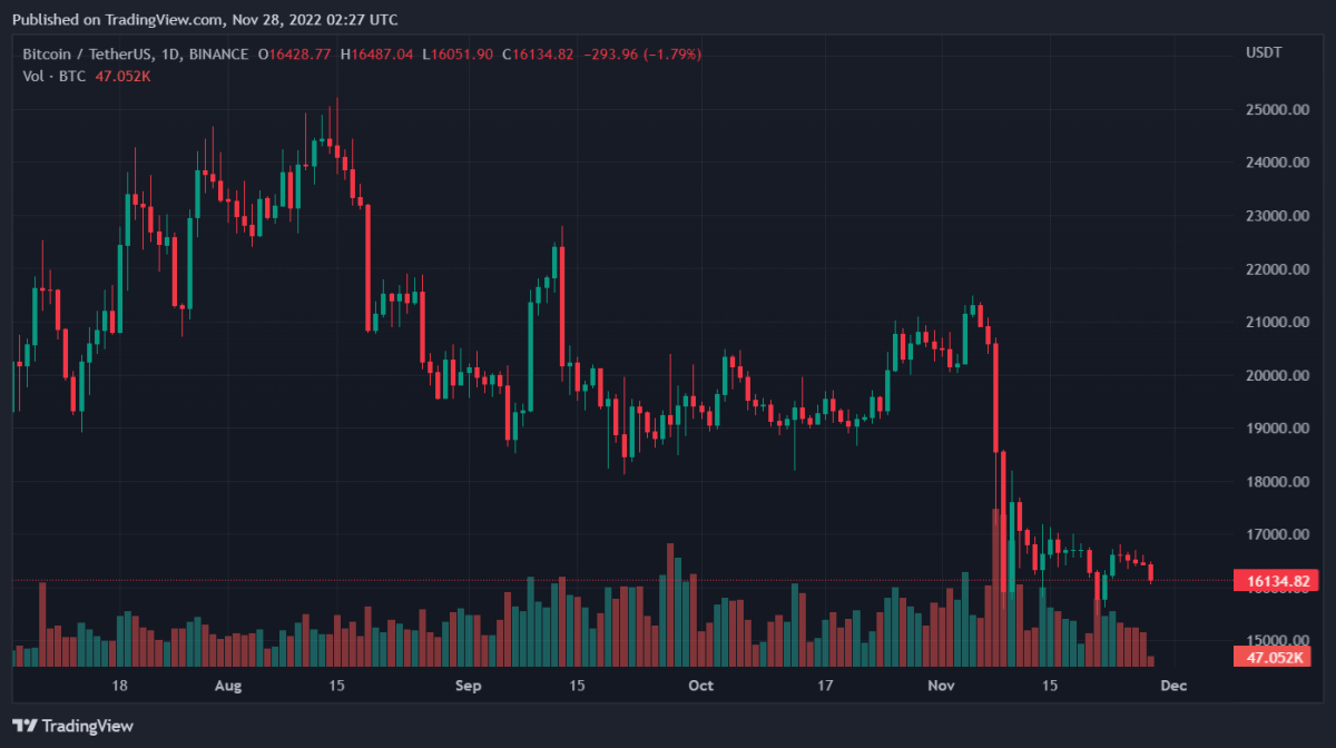 Текущая цена BTC составляет около 16 134,55 долларов. Рыночная капитализация Bitcoin оценивается в 310 083 099 837 долларов. Суточный объем торгов Bitcoin составляет примерно 23 149 780 832 доллара.