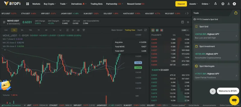В настоящее время пользователи могут отслеживать рыночные тенденции $MOVE в режиме реального времени на платформе BYDFi и активно участвовать в спотовой торговле. Вскоре BYDFi запустит услугу «BYDFi Copy Trading» , которая обеспечит беспрепятственный доступ к торговле криптовалютами. Это позволит как начинающим, так и занятым инвесторам инвестировать в рынки. BYDFi стремится предоставить пользователям опыт торговли криптовалютами.
