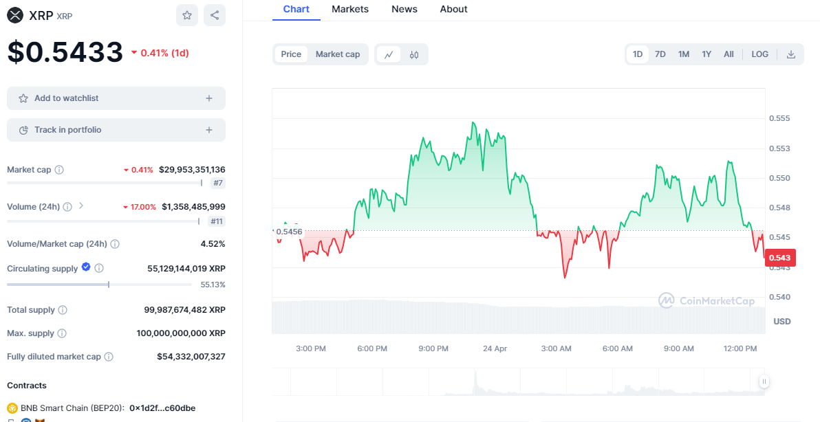 Вчера судебные разбирательства усилили реакцию рынка, и цена XRPвыросла на 2,5%, закрывшись на отметке $0,54921. Эта спираль красноречиво говорит о намерениях инвесторов Ripple, которые надеются на плавное юридическое разрешение текущих проблем.