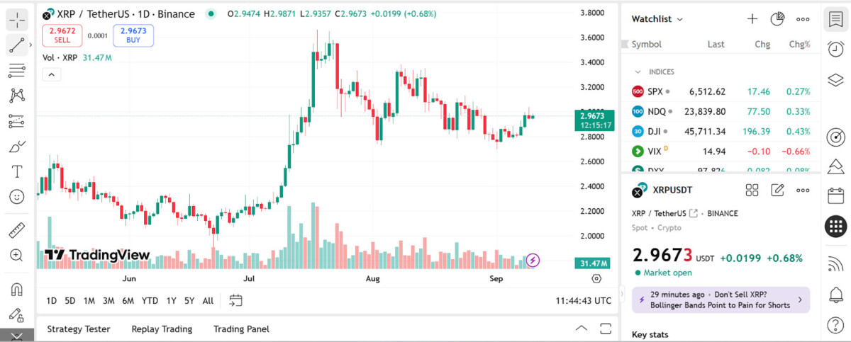 Недавний технический анализ указывает на мощный восходящий потенциал для Ripple. Одна из моделей указывает на прорыв к отметке $3,50, а затем к $4,70, если XRP удержится выше сопротивления около $3,07, с долгосрочными целями в $8-10, если приток средств в ETF и внедрение банковского сектора ускорятся. Такое движение станетtronначалом пути к целевой отметке в $5, если импульс сохранится.
