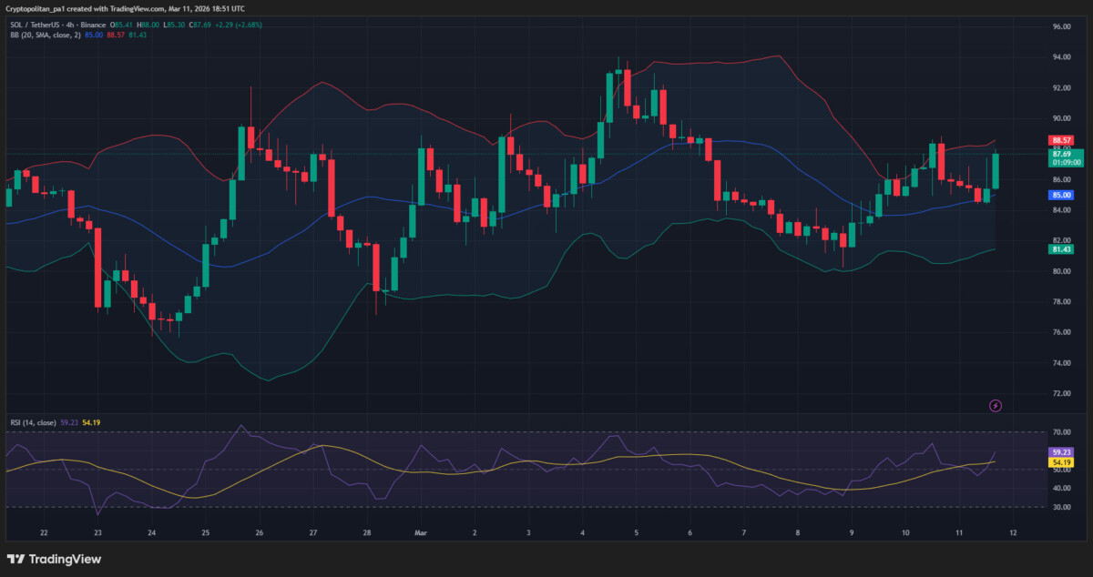 As of March 11, the Solana price analysis reveals bullish momentum as the bulls break through from $85. However, the price of SOL faces strong resistance below the $90 mark.