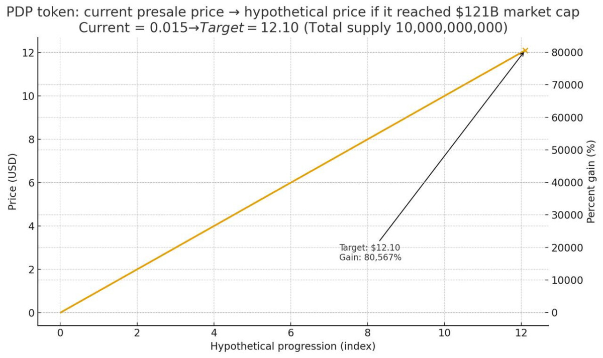 With such utility, the PDP token aligns with major crypto assets, such as Solana (SOL), meaning it boasts a significant upside and presents massive potential ROI for investors. PDP could reach a price of $12 per token, with its total supply of 10 billion coins, if it reaches Solana’s (SOL) market cap of $121 billion.