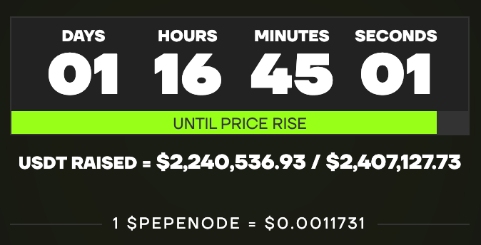 The presale reflects that early spark. Pepenode has raised over $2.2 million so far. The token price, however, has barely moved. The PEPENODE price has climbed from $0.001 to $0.0011731 since August. And this slow climb has started to worry some of its early backers.