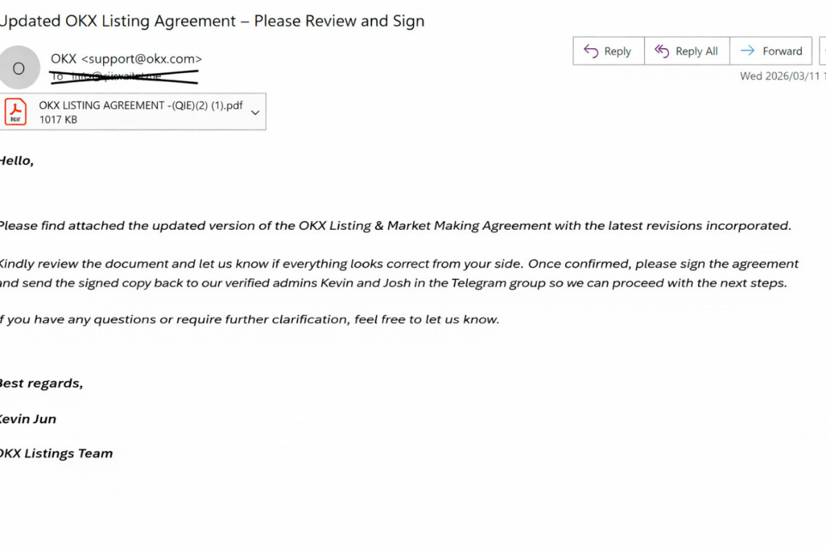 - Emails were sent from [email protected] and [email protected], which are listed as official OKX contact domains on the OKX website.