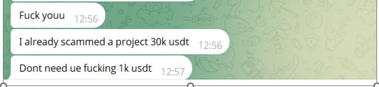 During the conversation, one of the accounts even bragged about previously taking $30,000 from another project through a fake listing scheme.