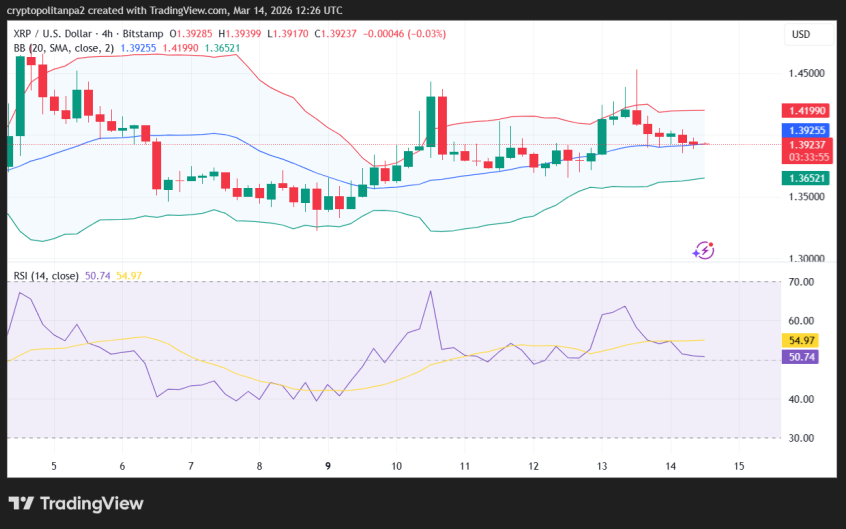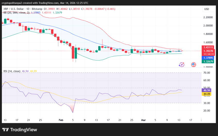 On March 14, 2026, XRP is showing signs of a correction after getting resistance at $1.40. The altcoin is currently trading around $1.39, losing around 2.3% over the past 24 hours. Despite a significant recovery yesterday, the altcoin’s price trend continues to be negative today, as bears have taken the lead.
