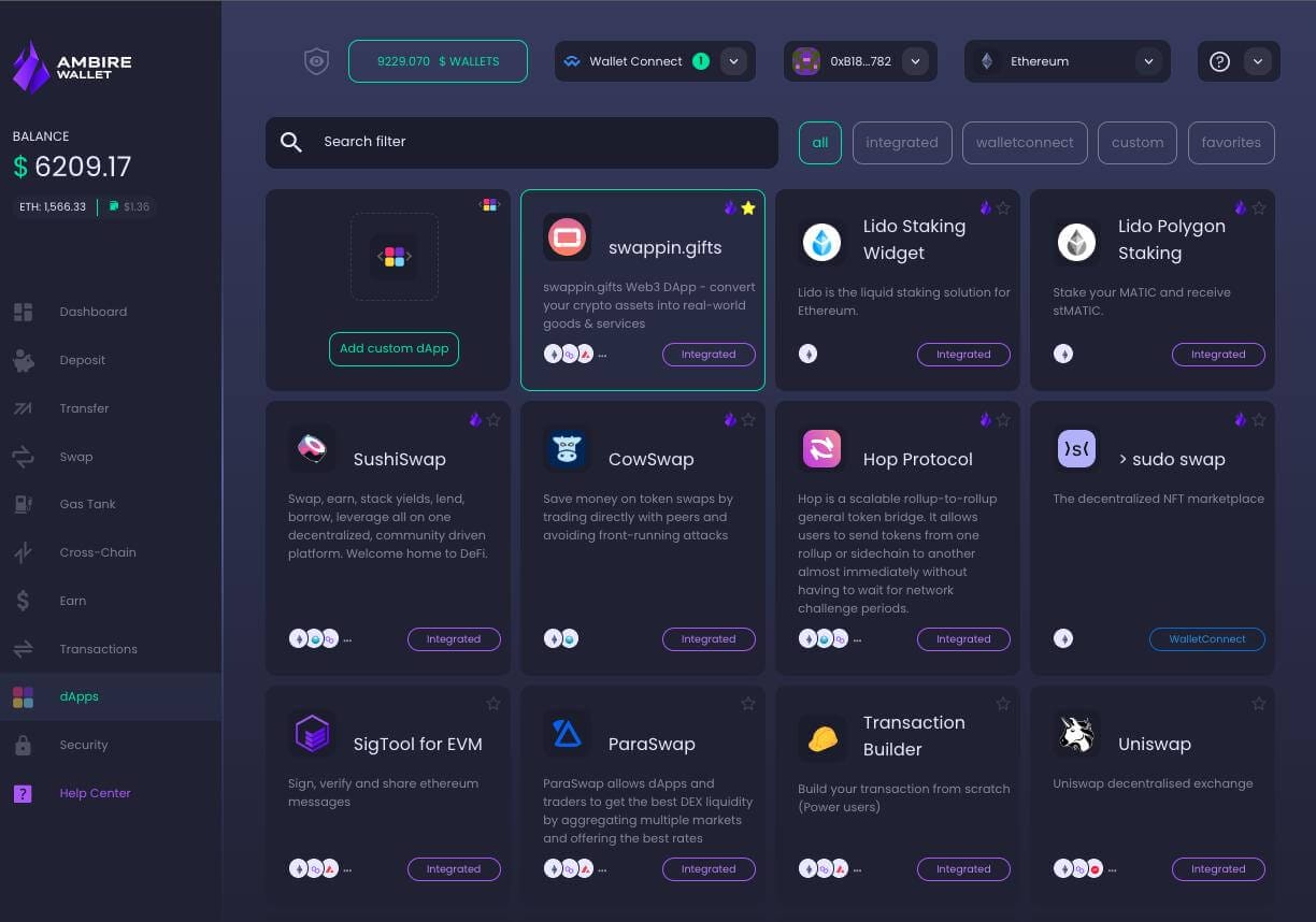 Ambire Wallet 推出了最新的插件集成和合作关系:swappin.gifts 应用现在可以直接从 Ambire Wallet dApp 目录中获取。.