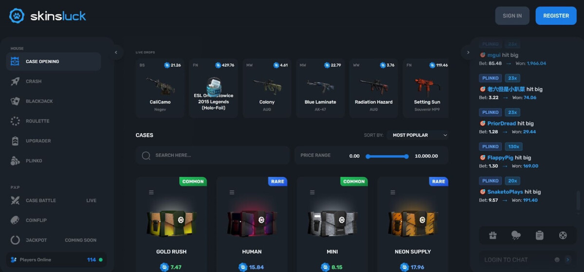 - SkinsLuck:适合想要快速游戏、明确赔率和直接获得特定升级的玩家——从今天开始,我们会向朋友推荐这里。
