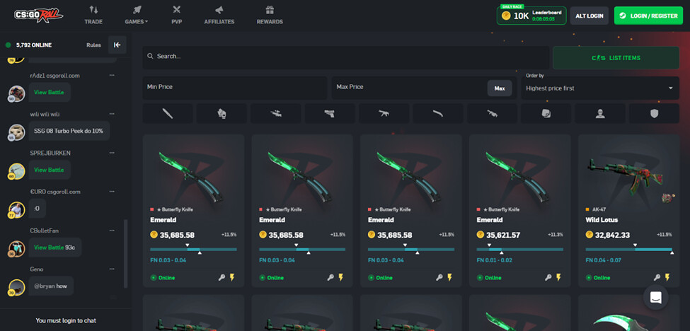 3) CSGORoll — 简洁的用户界面、庞大的资源库、活跃的社区