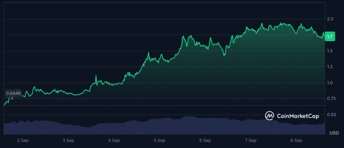 因此,该项目近期的飙升似乎是由炒作而非实际应用推动的。与网络迷因币发行平台D-Pump的合作引发了最初的上涨,随着FOMO情绪的蔓延和更多投资者的涌入,涨幅更是呈滚雪球式增长。.