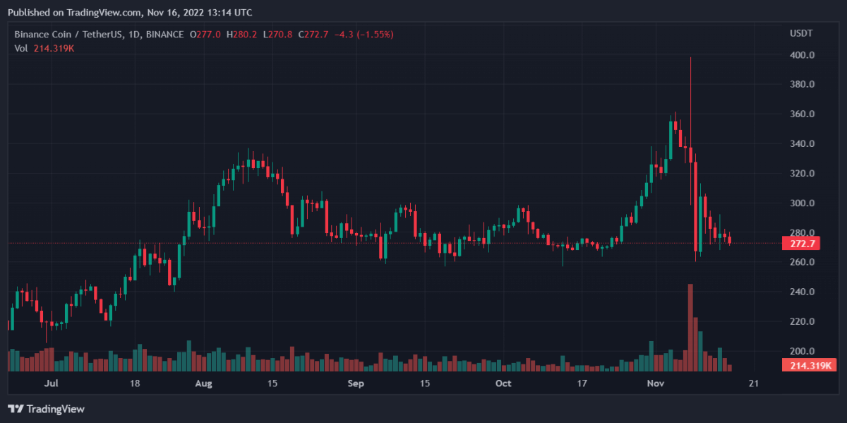 BNB 目前的价格约为272.33美元。该代币的市值估计为43,565,907,623美元。其24小时交易量约为961,963,997美元。.