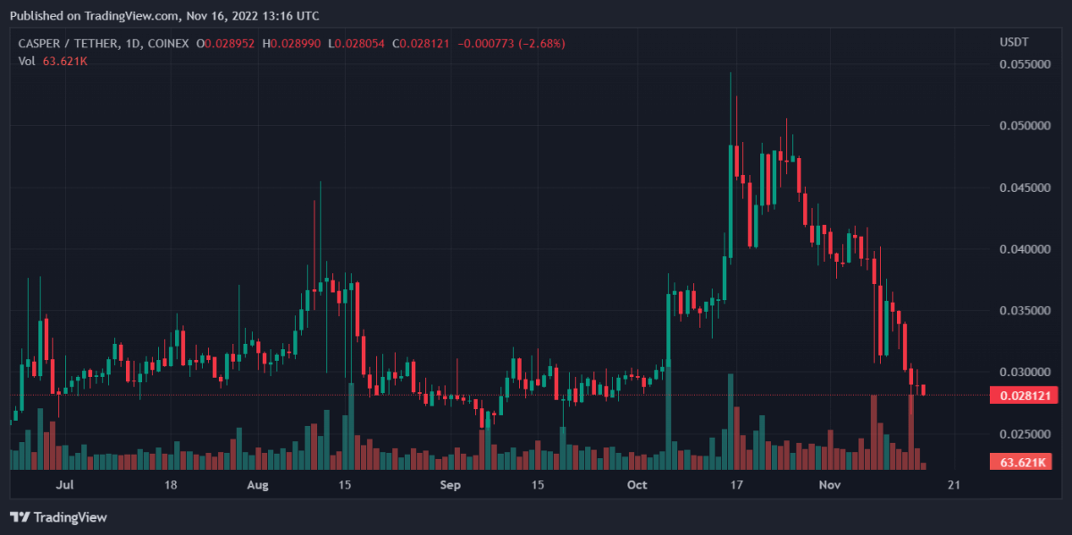 受此负面趋势影响,Casper 的价格也发生了变化。最新数据显示,过去 24 小时内,其价格下跌了 2.26%。该币种的周跌幅为 20.21%。CSPR 的价格目前在 0.02807 美元左右。.