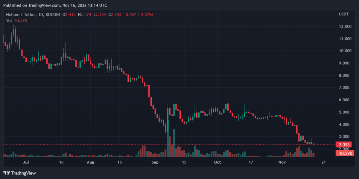 Helium 的市值估计为 307,908,353 美元。该代币的 24 小时交易量约为 6,826,618 美元。以其原生货币 HNT 计算,相同金额约为 2,894,936 HNT。.
