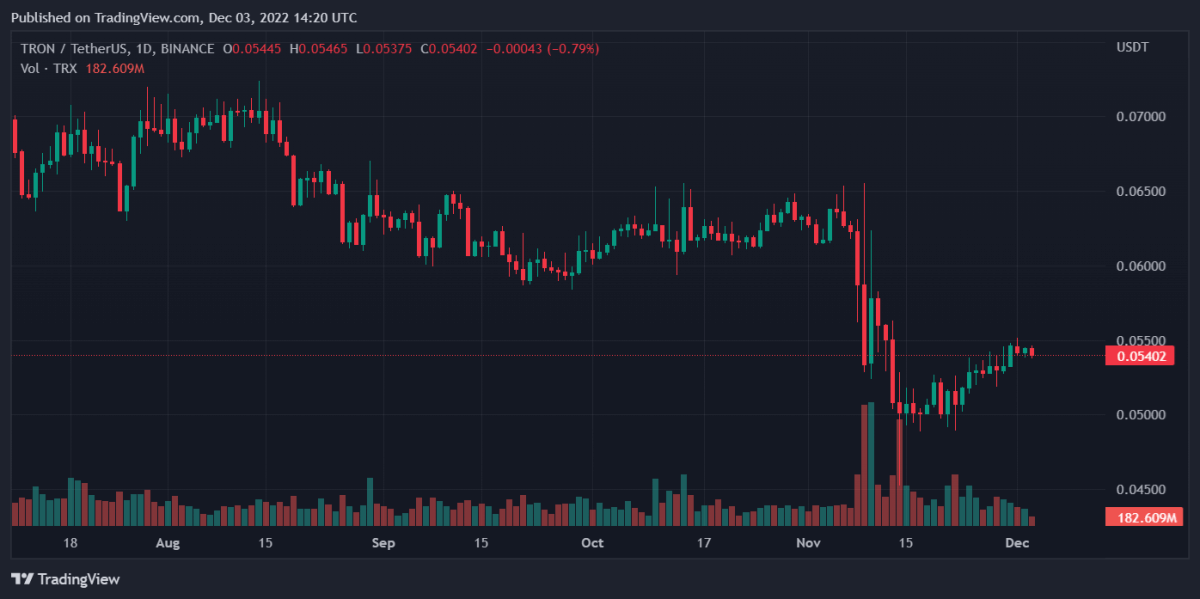 与其他加密货币市场走势相反, Tron 价格已转为熊市。最新数据显示,Tron 在过去一天下跌了 0.24%。而过去七天的数据显示,Tron 上涨了 1.20%。目前,TRX 的价格约为 0.05403 美元。.