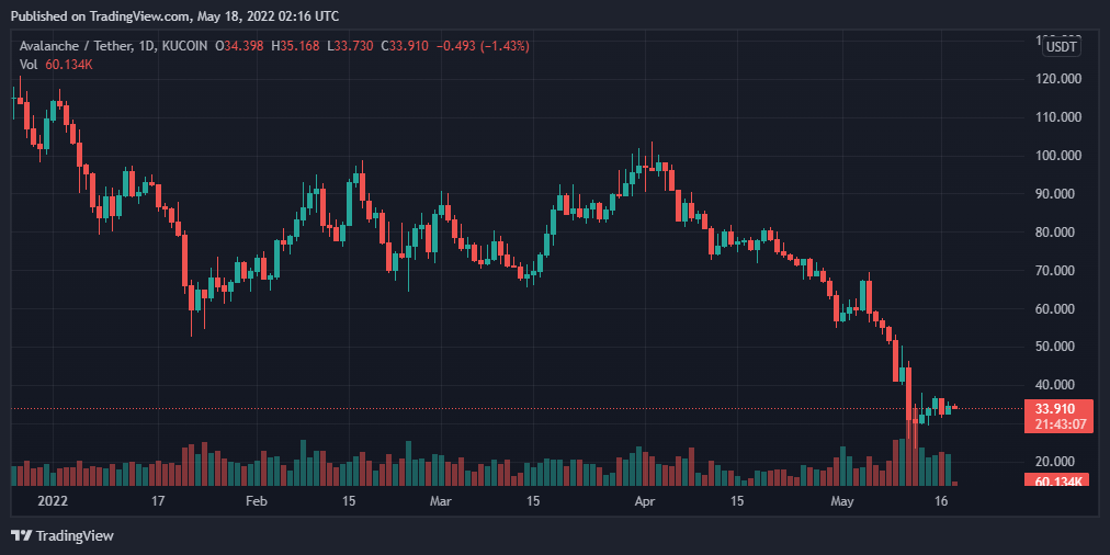 AVAX 目前的股价呈下跌趋势,约为 33.98 美元。其市值估计为 9,143,199,453 美元。该代币的 24 小时交易量约为 671,023,100 美元,以其原生货币 AVAX 计价的交易量约为 671,023,100 枚。.