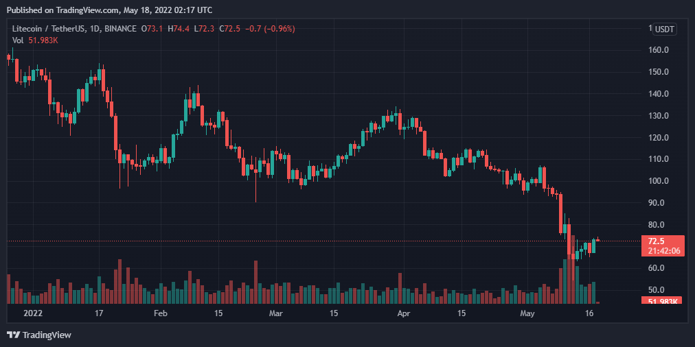 Litecoin 目前的售价约为 72.70 美元。 Litecoin的市值估计为 5,111,251,346 美元。由于资金流入,其交易量也大幅增长,约为 782,068,130 枚。该币种的流通供应量约为 70,306,544 枚。.