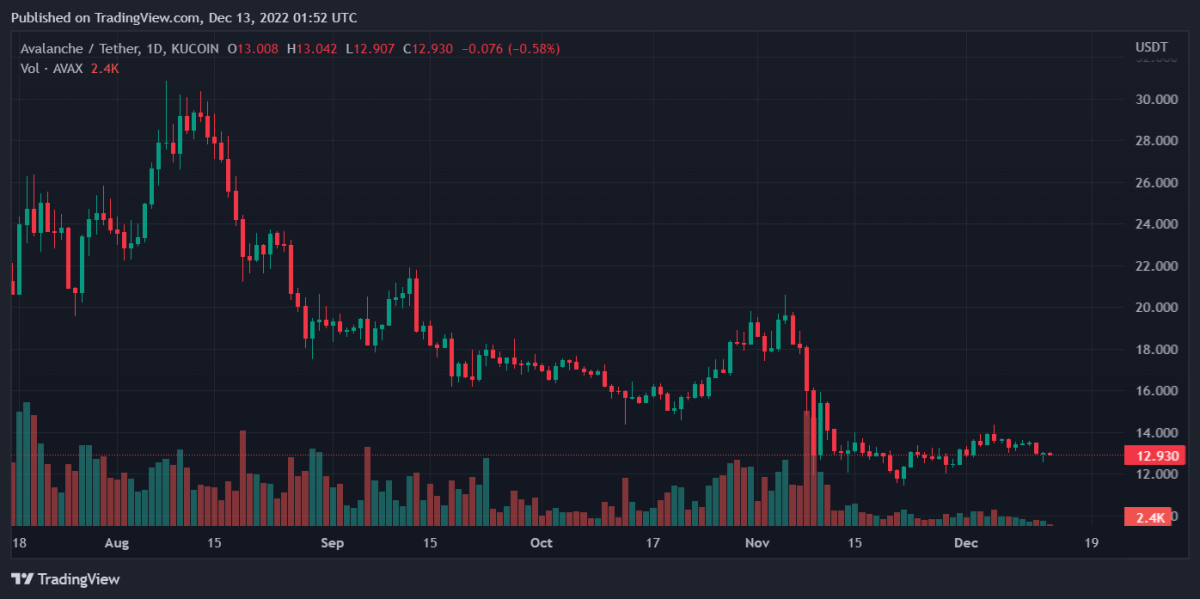 随着资金流入增加, Avalanche 上涨势头也重新增强。最新数据显示,过去 24 小时内,其股价上涨了 0.03%。但周线数据显示,该股下跌了 5.14%。AVAX 目前的股价约为 12.95 美元。.