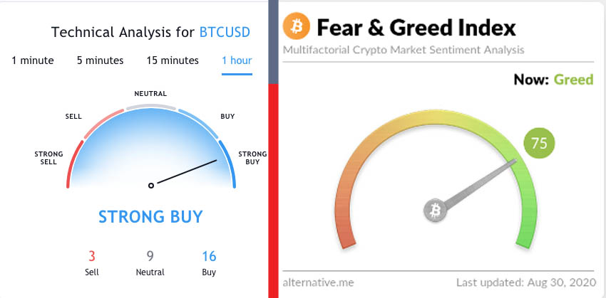 Bitcoin 价格走势完全取决于技术因素,这已不是什么秘密。两个主要的指标图表,即 Trading View 买卖市场情绪图表和恐惧与贪婪指数,都支持我们简单的分析,即这种加密货币很可能会突破当前的阻力位,创下新高。.