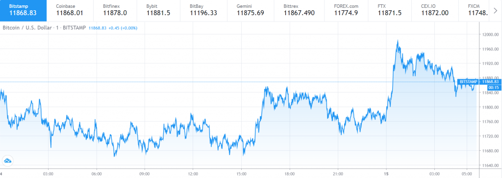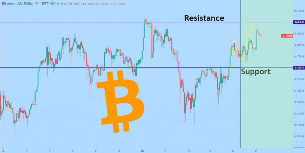 比特Bitcoin价格突破了11840美元大关。TradingView上的加密货币分析师Atlas Trades认为,比特币价格将再次测试12000美元的阻力位。