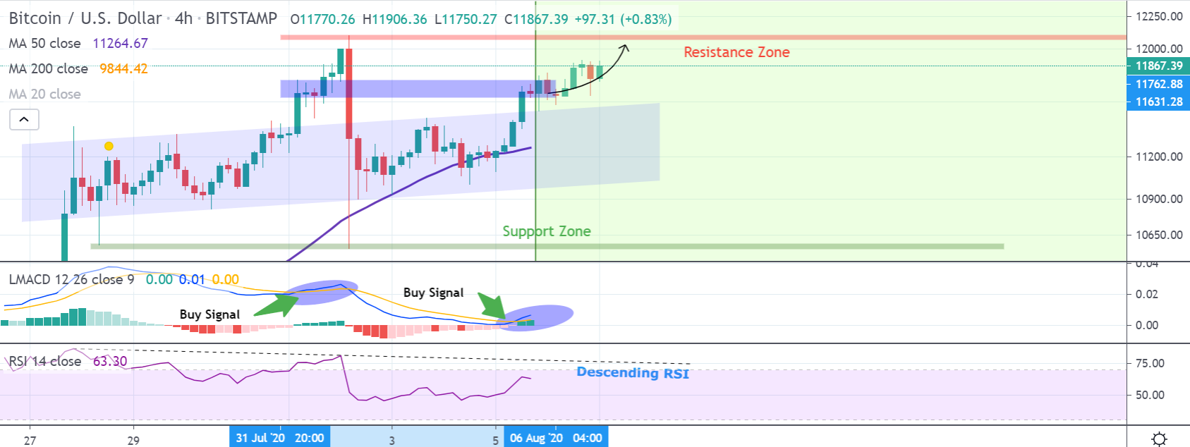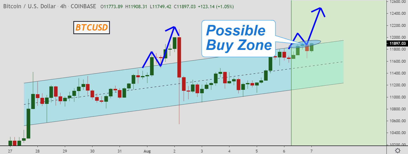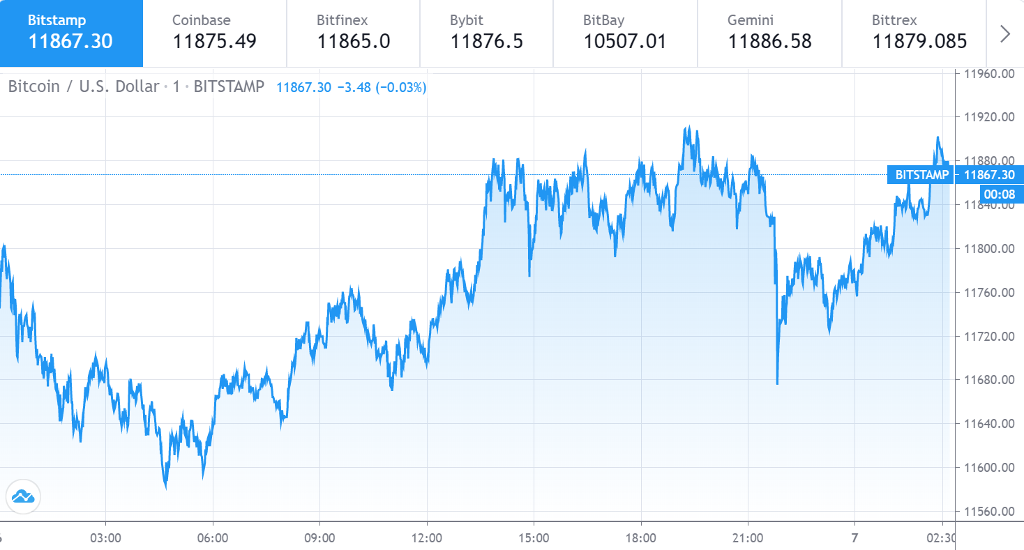 比特Bitcoin价格突破11880美元大关。市场预期该加密货币将接近12000美元附近的短期买入区域。