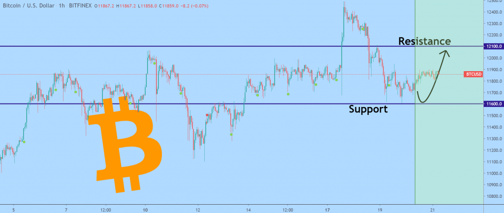 该加密货币在 11600 美元附近保持了重要的支撑位,预计接下来将上涨至 12100 美元,该价位是最近的阻力位。.