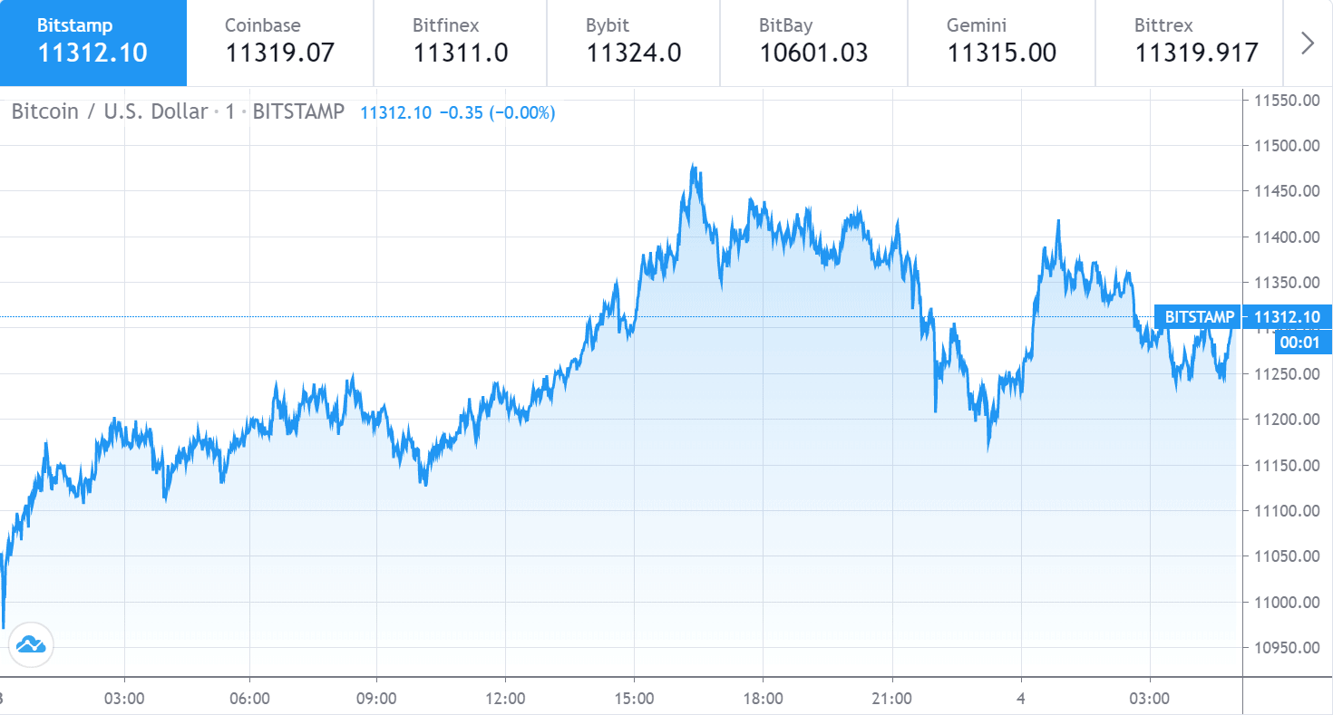 当天开盘时,比特币交易价格高于 10950 美元。当日最低价为 10969.27 美元,最高价为 11478.74 美元。截至发稿时, Bitcoin Bitcoin 交易价格为 11312.10 美元。.