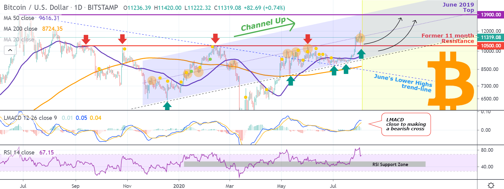比特币在 10500 美元附近遇到了长达 11 个月的阻力位。这个阻力位对比特币来说至关重要。 Bitcoin 终于突破了这个过去 11 个月一直在测试的阻力位。分析师认为,在经历了一轮上升通道后,比特币现在将尝试测试 13900 美元附近的阻力位。.