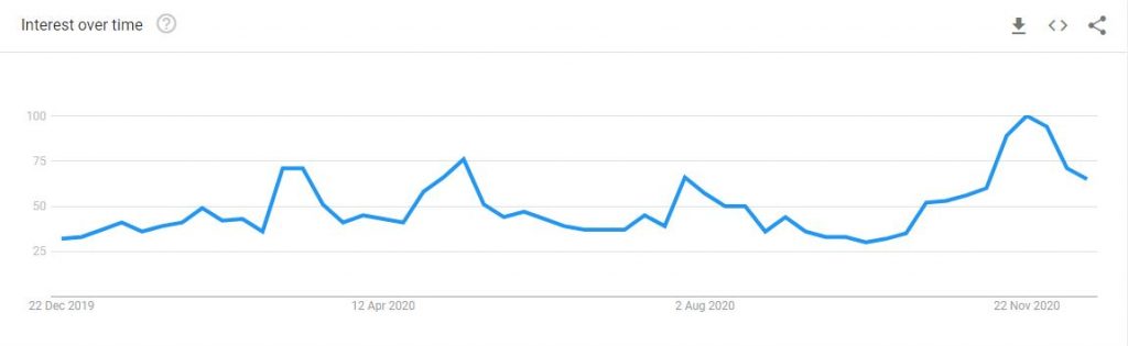 随着Bitcoin价格的每一次上涨,其知名度和影响力都在不断提升。周三,比特币突破了 2 万美元的阻力位,并成为推特上讨论度最高的话题。此外,自 9 月以来,谷歌上关于 Bitcoin 搜索量也有所增长,表明全球对这种加密货币的兴趣日益浓厚。.