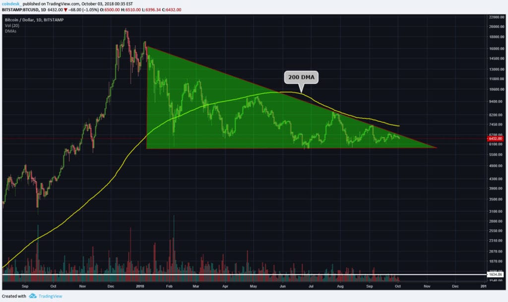 分析师通过连接更低的高点来衡量下跌趋势,并通过从左到右向下突破主趋势线来构建主趋势线。此外,为了显示下降形态,次趋势线连接到更低的低点。这最终形成一个下降三角形,表明该货币的下跌性质。.