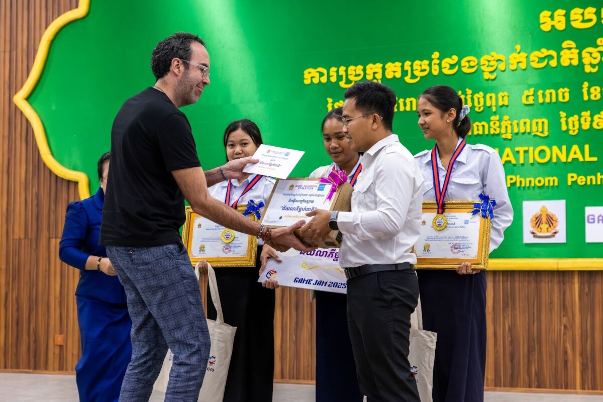 在金边举行的全国游戏创作大赛上,由 UNICEF 和柬埔寨教育、青年和体育部 (MoEYS) 联合主办,来自 11 个省份 14 所学校的 600 多名 10 至 18 岁的dent(其中 65% 以上是女孩)经过六周的定制学习之旅,向专家评审团展示了他们的原创电子游戏。.