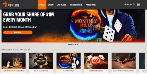 我们先来聊聊扑克。Ignition 经常举办像 Monthly Milly 这样流量极高的扑克锦标赛,其中 GTD(在线赌场向用户保证的奖金)超过 100 万美元。