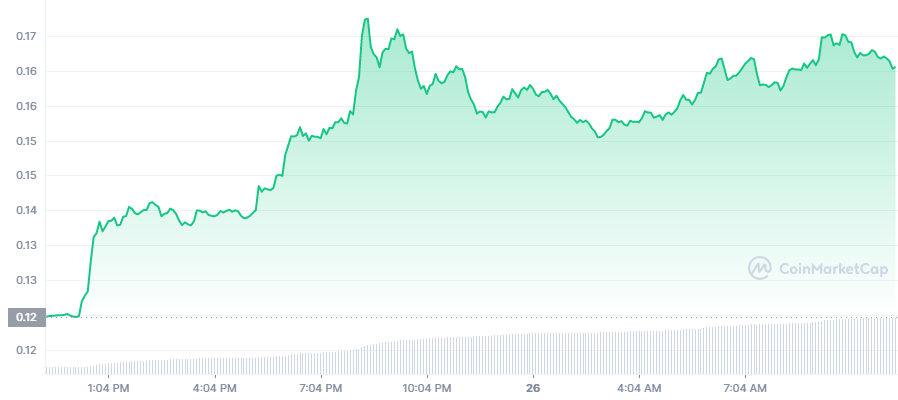 狗狗币今日涨幅仍超过18%,价格接近0.16美元。多位分析师推测,这一新进展可能意味着马斯克会将狗狗币整合到热门社交媒体平台。 Dogecoin 联合创始人比利·马库斯和特斯拉首席执行官都认为,狗狗币作为一种货币,未来将拥有更多整合渠道,发挥至关重要的作用。