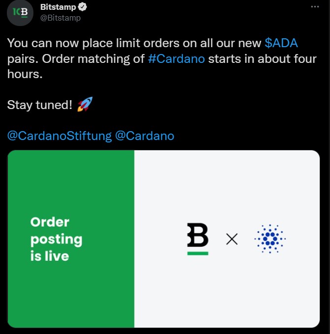 - 规模更大的加密货币交易所 Bitstamp 宣布上线 ADA。.