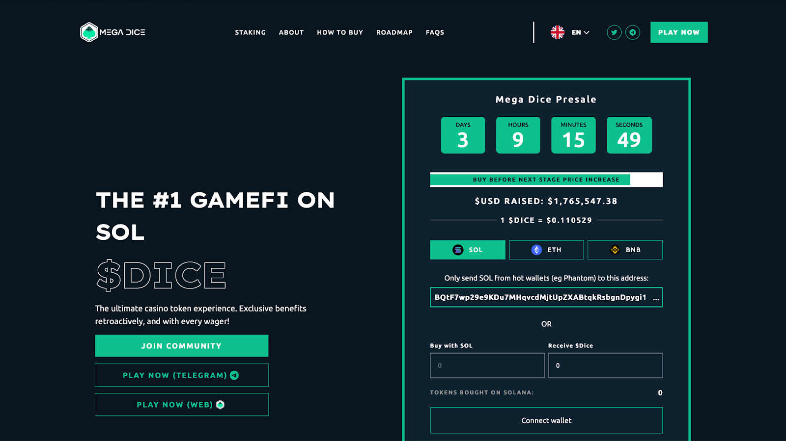 Mega Dice持续突破界限,挑战行业常规。除了成为首个在 Solana上线的GameFi代币外,它还将在该平台上推出期货交易。.