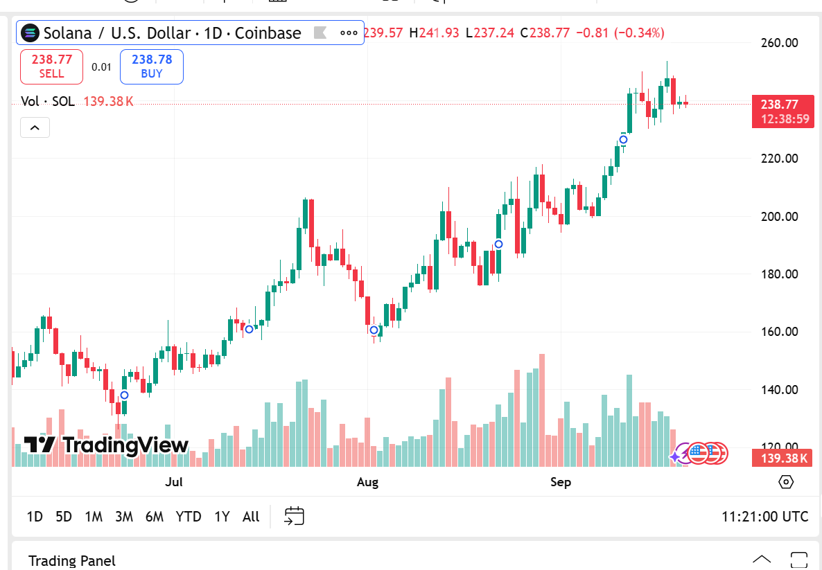 Solana股价目前为 238.77 美元,过去一天上涨 0.33%。Solana 市值达 1297.6 亿美元,凭借Solana大规模支持去中心化应用的能力,持续吸引着机构和散户投资者的关注trac