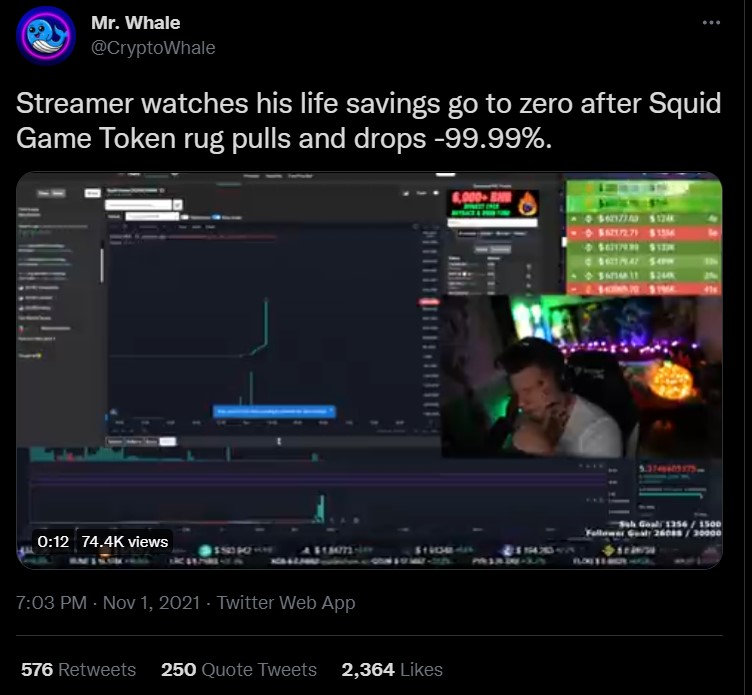 这种边玩边赚的模式,加上Netflix热门剧集的热播,让投资者和加密货币爱好者从上周开始纷纷涌入市场购买该代币。然而,现在看来所有希望都破灭了,因为开发商已经取消了该项目。.