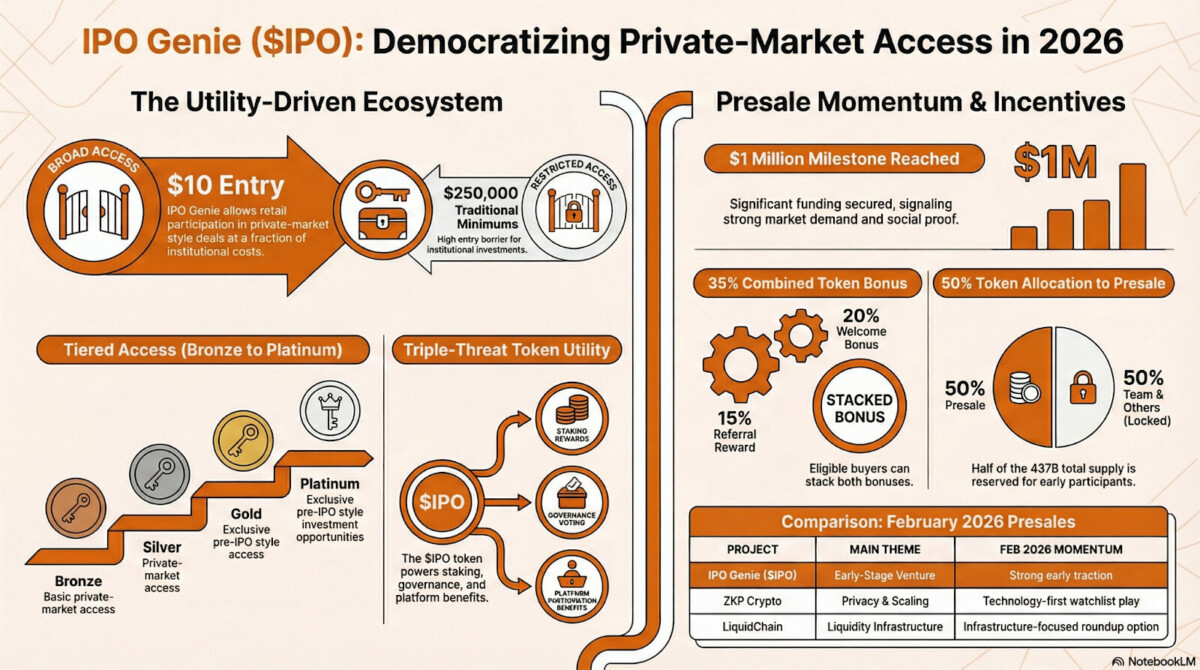 IPO Genie 目前正根据这些方面接受评判,这也是为什么它出现在 2026 年 2 月预售报道中的原因。.