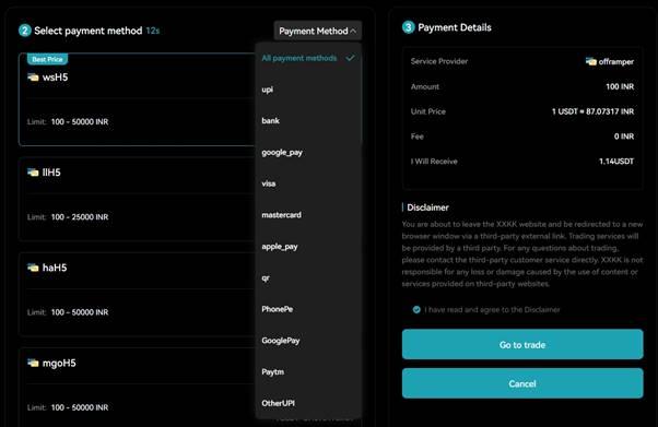 用户可以从这些灵活的存款方式中进行选择,无论是小额快速存款还是大额转账,并立即将 INR 兑换成 USDT。.